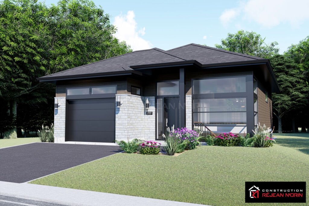 Maison unifamiliale 1 étage «plain-pied» contemporaine avec garage intégré