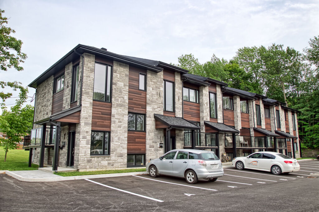 Ces maisons de ville sont d’une qualité supérieure qui, par ailleurs, a fait notre réputation au cours des dernières années. Les revêtements extérieurs en façade sont composés de pierre et de déclins d’acier imitation bois torréfié, ce qui en fait un bâtiment durable et sans entretien. Les revêtements de plancher offerts sont du bois franc en érable et de la céramique. Le terrassement compte un stationnement asphalté et une cour arrière privée gazonnée.